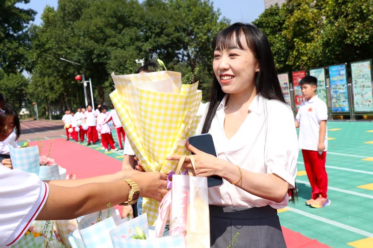 中午時(shí)分,校園沉浸在一片溫馨感人的氛圍中。校領(lǐng)導(dǎo)逐一為教師敬上熱茶,暖流在指尖傳遞,拉近了心與心的距離。學(xué)生們將鮮花和禮品獻(xiàn)給老師,每一份禮物雖小,卻承載著孩子們純真的感恩與深深的敬意。