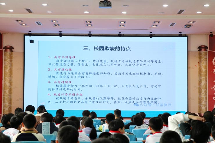 金秋送爽,法潤人心。為貫徹落實國家保護未成年人的法律法規(guī),預(yù)防、打擊校園欺凌事件,提高學(xué)生對校園霸凌的應(yīng)對能力,增強學(xué)生的防范意識,營造平安、和諧、穩(wěn)定的育人環(huán)境。2025年10月24日下午,我校特別邀請了正定縣司法局趙亞敏律師,為同學(xué)們開展了一場深入人心的法制教育講座。本次講座由小學(xué)部王興主任主持,小學(xué)初中國際高中全體師生參與學(xué)習(xí)。