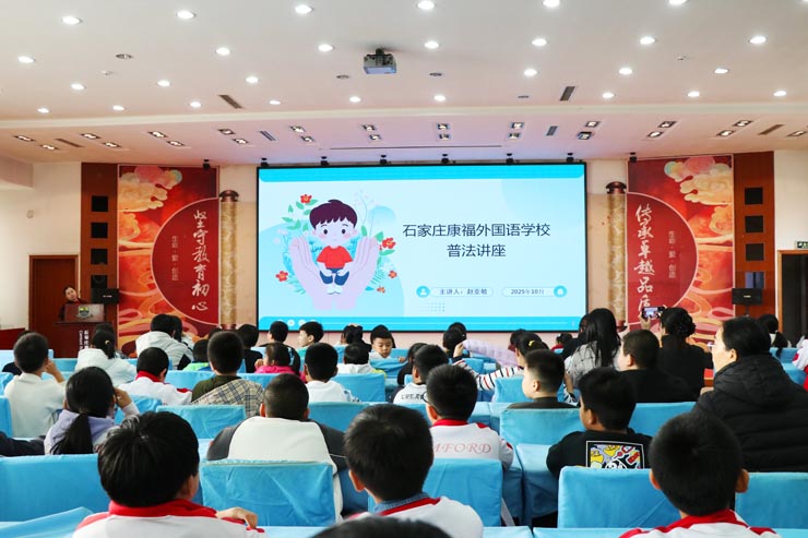 金秋送爽,法潤人心。為貫徹落實國家保護未成年人的法律法規(guī),預(yù)防、打擊校園欺凌事件,提高學(xué)生對校園霸凌的應(yīng)對能力,增強學(xué)生的防范意識,營造平安、和諧、穩(wěn)定的育人環(huán)境。2025年10月24日下午,我校特別邀請了正定縣司法局趙亞敏律師,為同學(xué)們開展了一場深入人心的法制教育講座。本次講座由小學(xué)部王興主任主持,小學(xué)初中國際高中全體師生參與學(xué)習(xí)。